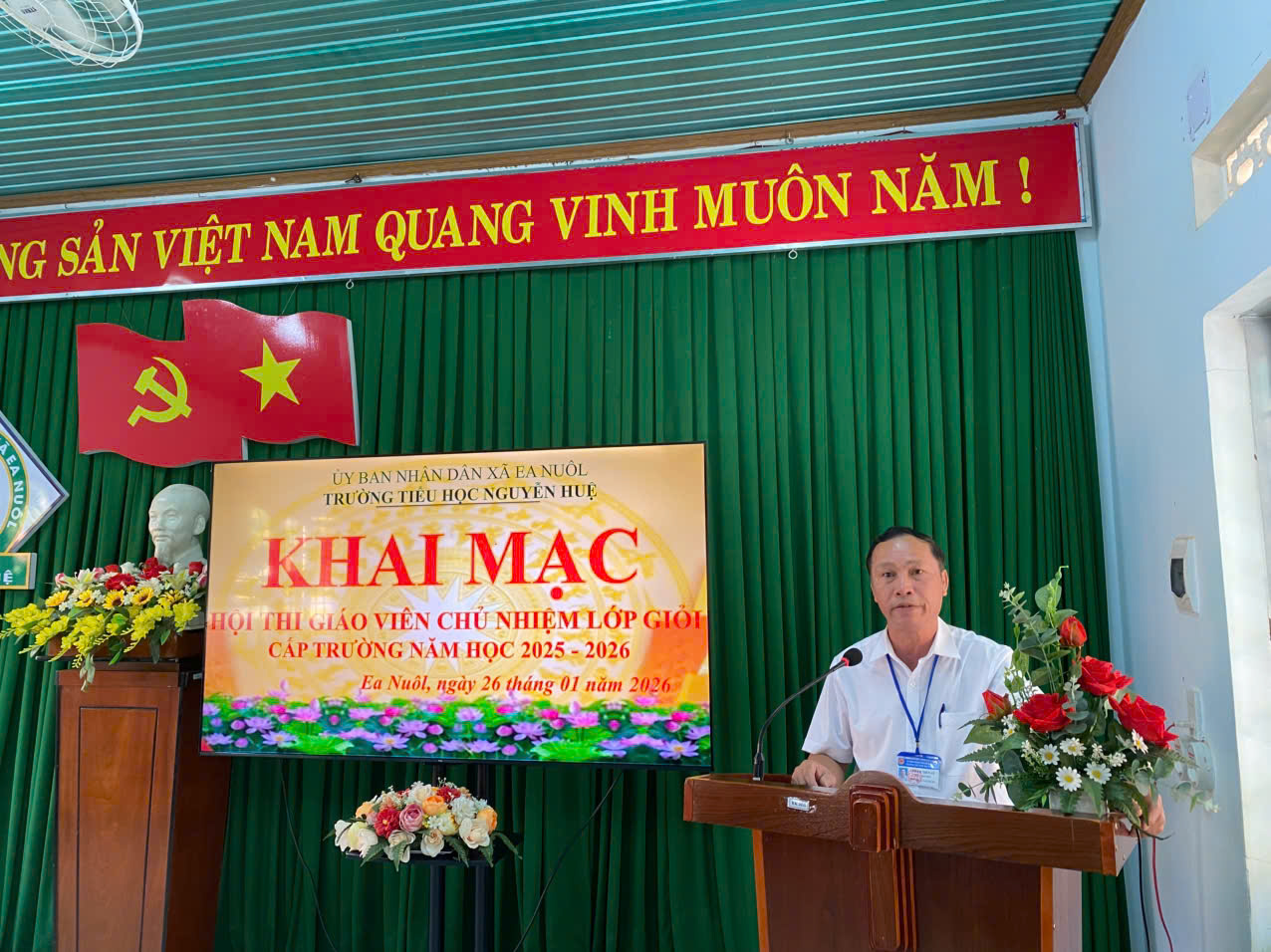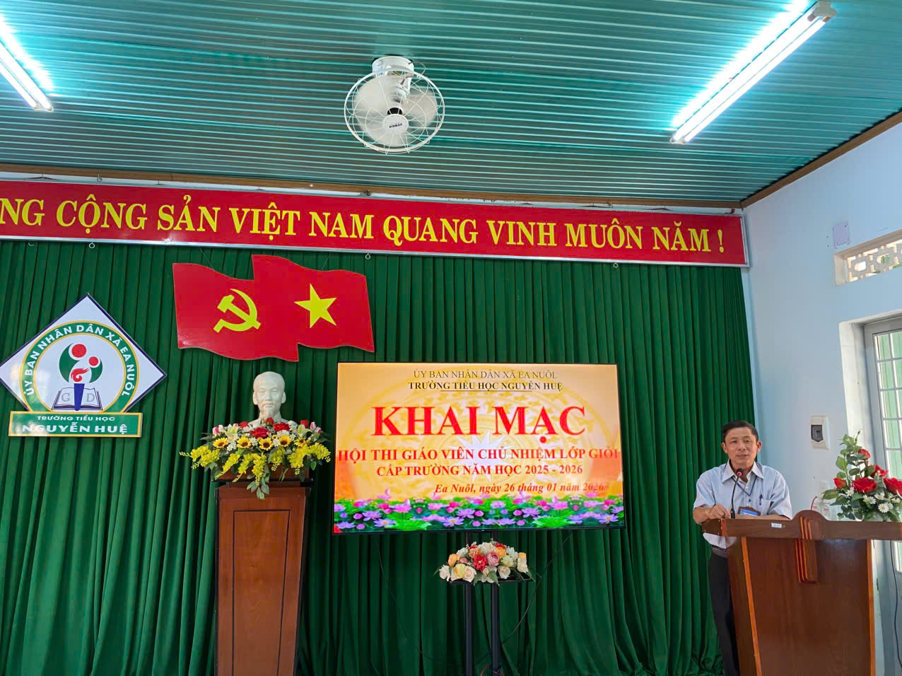 Căn cứ Thông tư số 22/2019/TT-BGDĐT, ngày 20/12/2019 của Bộ trưởng Bộ Giáo dục và Đào tạo ban hành Quy định về Hội thi giáo viên dạy giỏi cơ sở giáo dục mầm non; Giáo viên dạy giỏi, Giáo viên chủ nhiệm lớp giỏi cơ sở giáo dục phổ thông; Thực hiện Kế hoạch số 219/KH-NH, ngày 15/12/2025 về Kế hoạch tổ chức Hội thi Giáo viên chủ nhiệm lớp giỏi cấp trường năm học 2025 – 2026, sáng ngày 26/01/2026, trong không khí trang trọng và đầy hứng khởi, trường Tiểu học Nguyễn Huệ đã chính thức khai mạc Hội thi Giáo viên chủ nhiệm (GVCN) lớp giỏi cấp trường năm học 2025 – 2026.