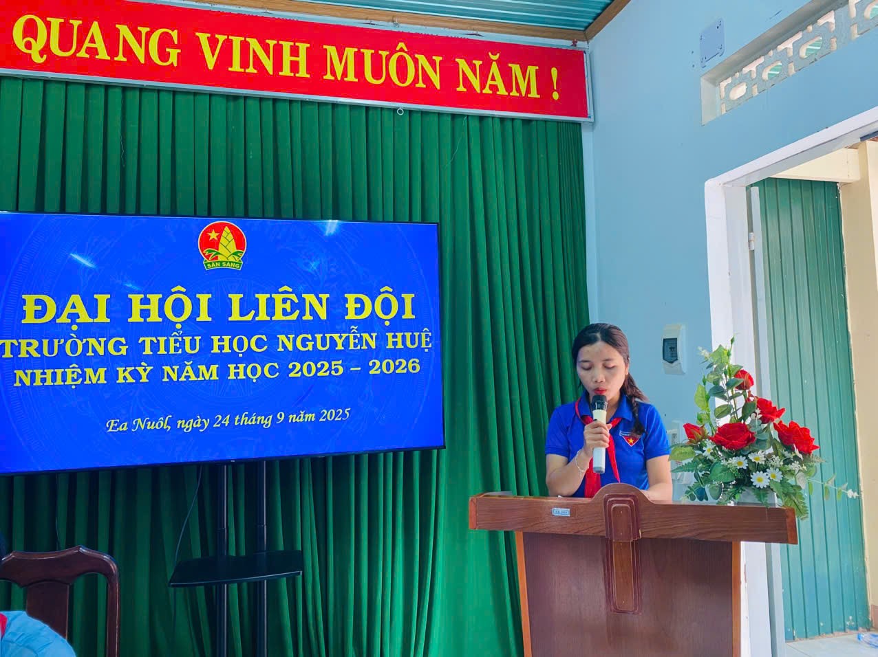 Phát biểu tại Đại hội, đồng chí H’Nhung Hwing – Đại diện BCH Đoàn xã Ea Nuôl đã ghi nhận và biểu dương những kết quả nổi bật mà Liên đội đạt được trong năm học qua. Đồng chí bày tỏ niềm tin rằng Ban Chỉ huy Liên đội mới sẽ tiếp tục phát huy tinh thần đoàn kết, sáng tạo, nêu cao ý thức học tập, rèn luyện, quan tâm giúp đỡ bạn bè có hoàn cảnh khó khăn, xây dựng Liên đội ngày càng vững mạnh, xứng đáng là cháu ngoan Bác Hồ.