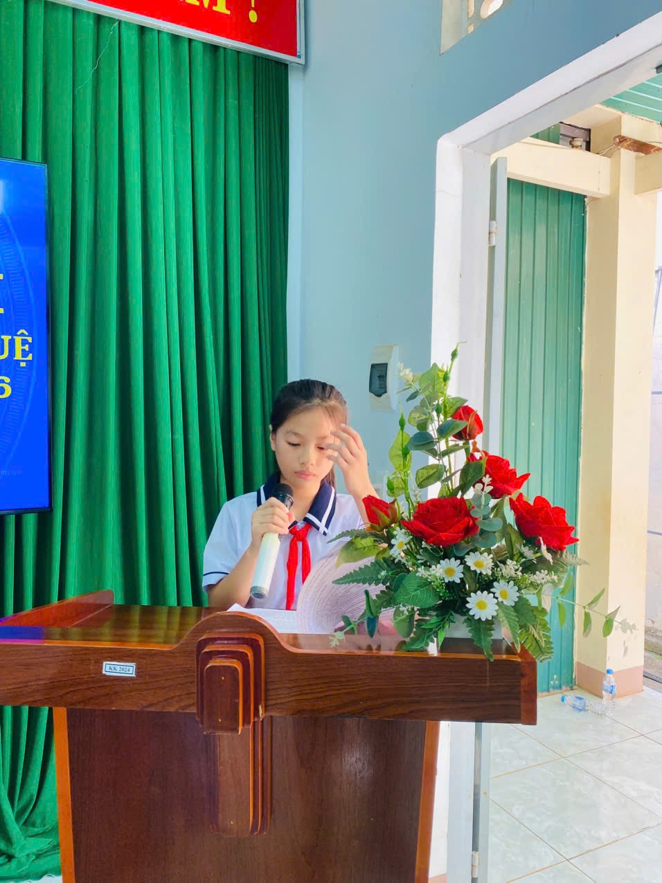 Bạn Hứa Thị Hồng Ngọc đã trình bày Báo cáo tổng kết công tác Đội và phong trào thiếu nhi nhiệm kỳ 2024 – 2025.