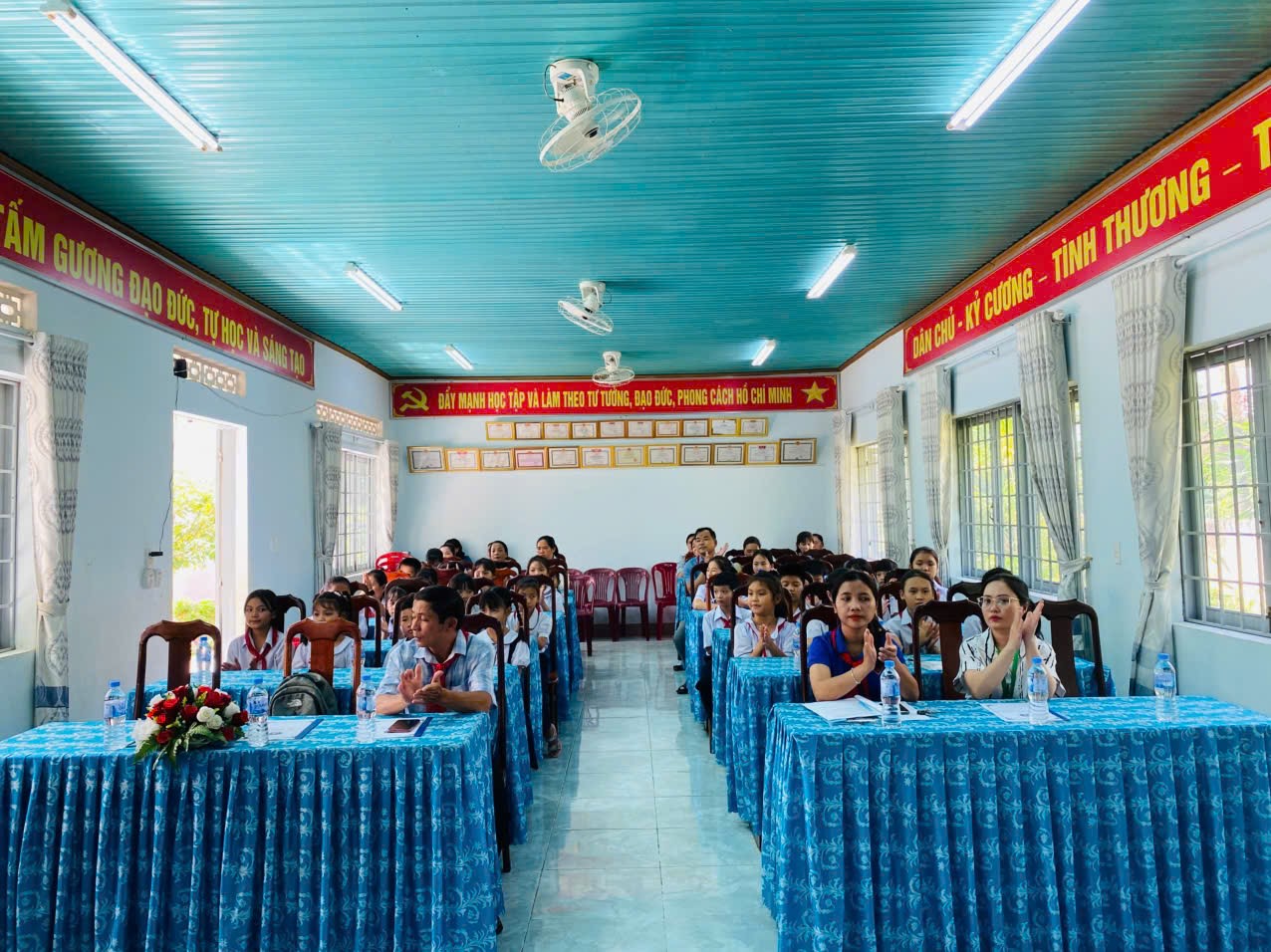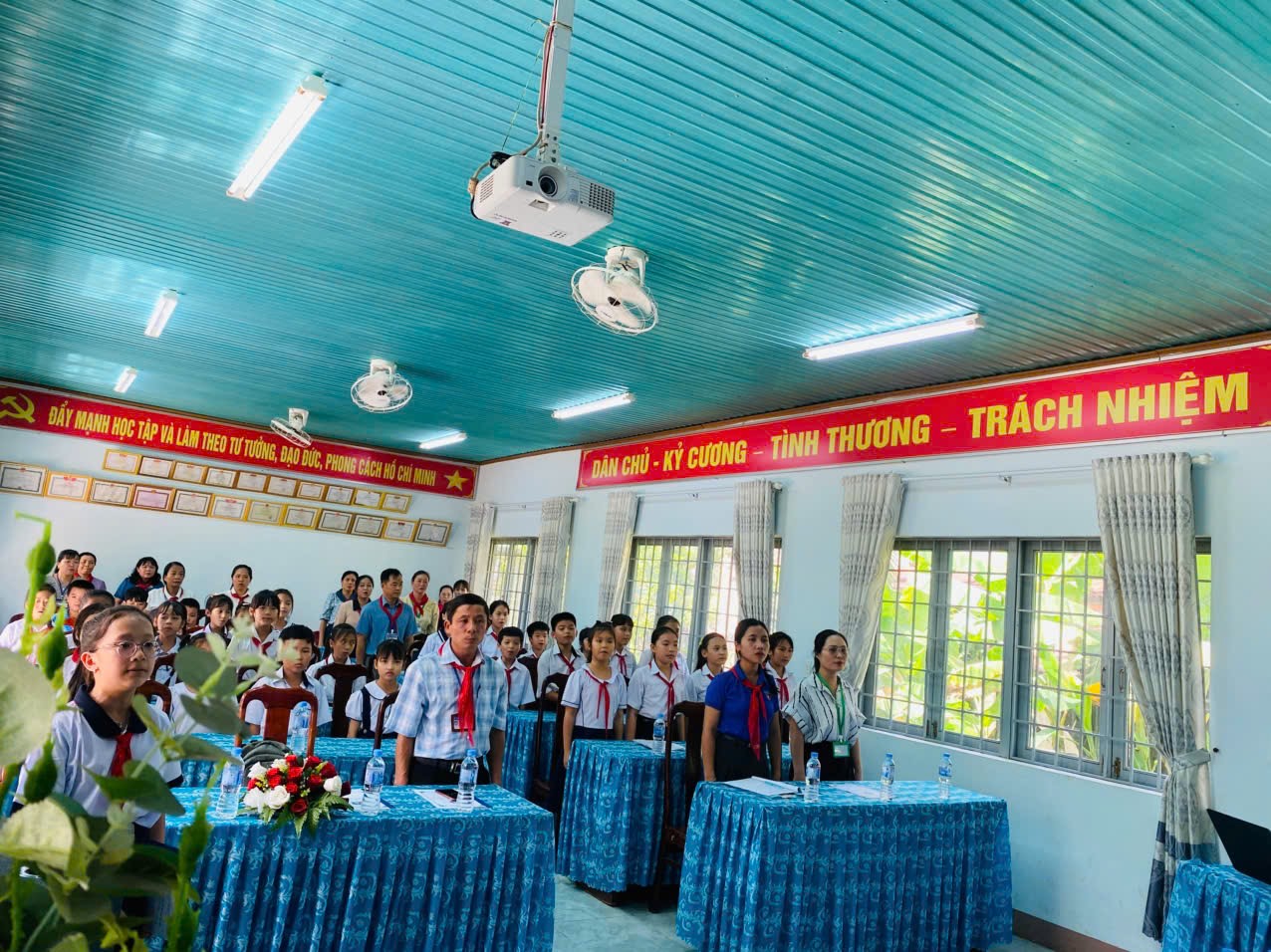Theo chương trình, thay mặt Đoàn Chủ tịch, bạn Hứa Thị Hồng Ngọc đã trình bày Báo cáo tổng kết công tác Đội và phong trào thiếu nhi nhiệm kỳ 2024 – 2025. Bản báo cáo đã chỉ rõ những điểm mạnh, hạn chế trong phong trào, đồng thời bạn Bùi Ngọc Phi Yến đã đề ra phương hướng hoạt động của Liên đội nhiệm kỳ 2025 – 2026 với nhiều nội dung phong phú, thiết thực.
