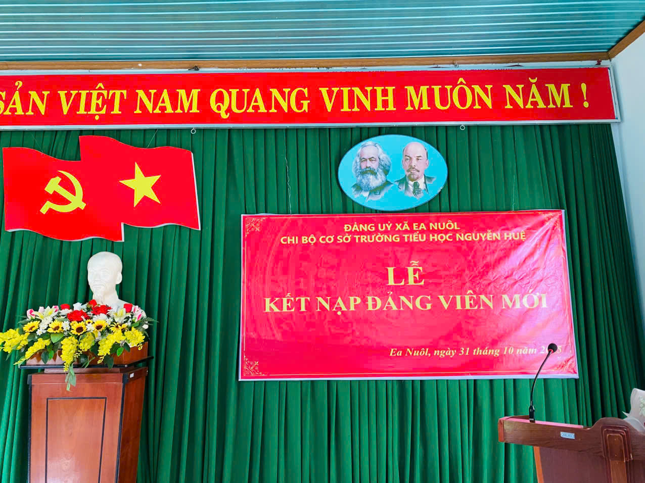 Bồi dưỡng, kết nạp đảng viên mới là nhiệm vụ thường xuyên được Chi bộ cơ sở trường Tiểu học Nguyễn Huệ rất quan tâm. Lễ kết nạp Đảng viên Đảng Cộng Sản Việt Nam đối với mỗi người là kỷ niệm đáng nhớ, đáng trân trọng và tự hào. Bởi từ đó, mỗi chúng ta ý thức hơn về nghĩa vụ, trách nhiệm của mình trong công việc với vai trò người Đảng viên. Điều đó sẽ góp phần xây dựng Chi bộ cơ sở trường Tiểu học Nguyễn Huệ luôn đoàn kết và phát triển vững mạnh.