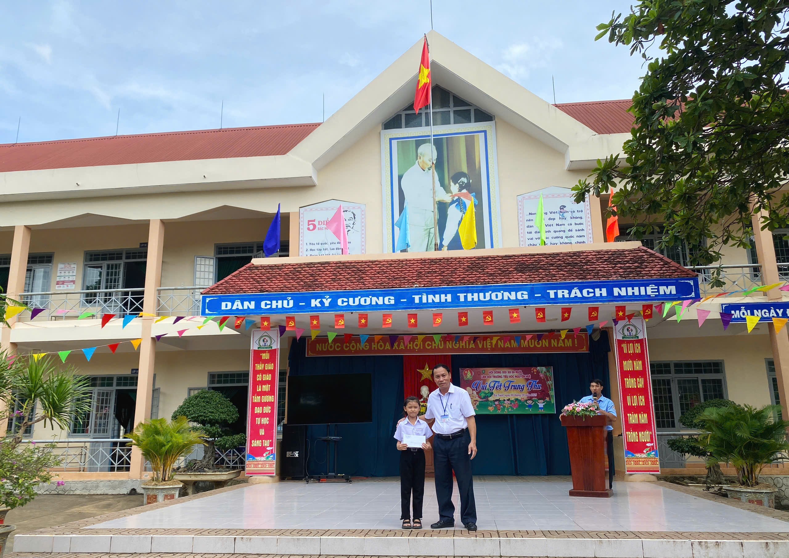 Mùa trung thu năm 2025 càng thêm ấm áp khi em Bùi Nguyễn Thủy Tiên (lớp 3D) được nhận xuất học bổng từ UBND xã Ea Nuôl trao tặng. Đó là niềm vui, niềm động viên giúp em vơi bớt khó khăn trong cuộc sống, động viên các em vượt lên hoàn cảnh, tự tin trên con đường học tập.